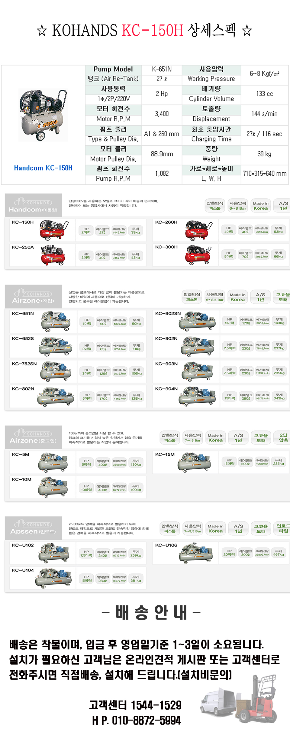 > [코핸즈] 2마력 이동형콤프레샤
