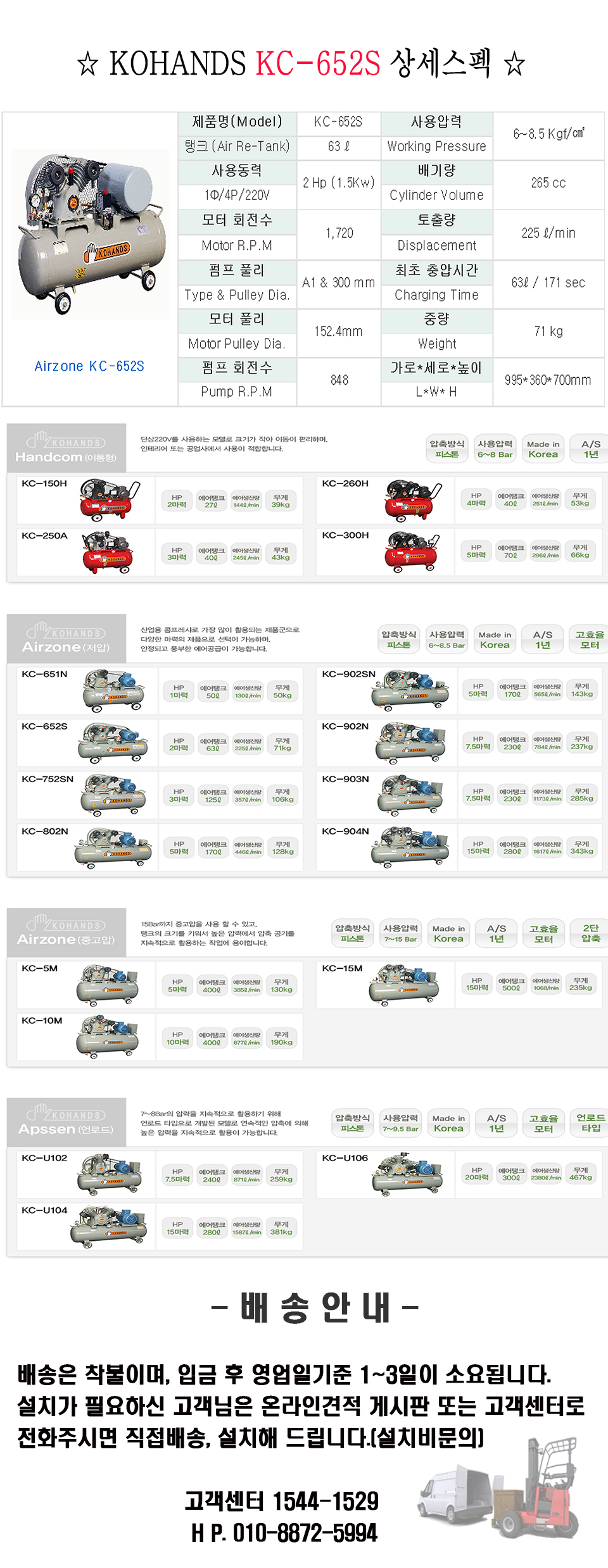 전기사양은 220V단상, 220V / 380V 삼상입니다.