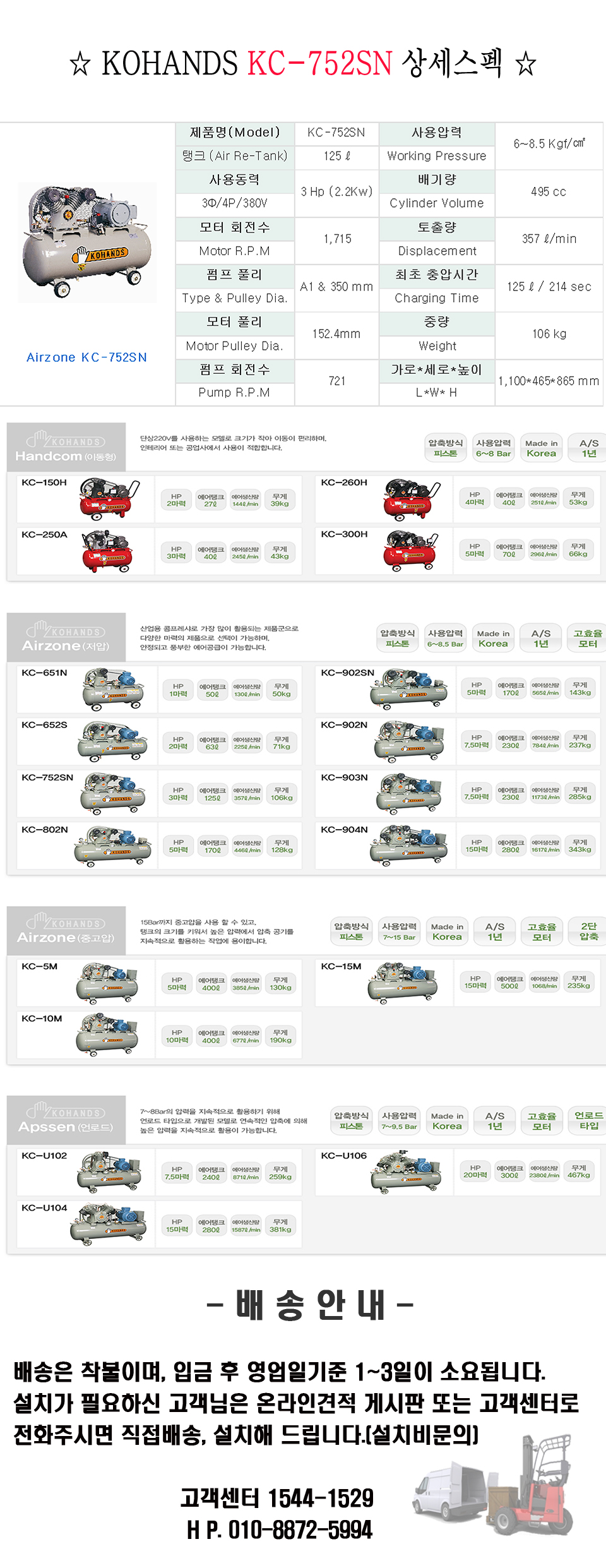 > [코핸즈] 3마력 이동식콤프레샤